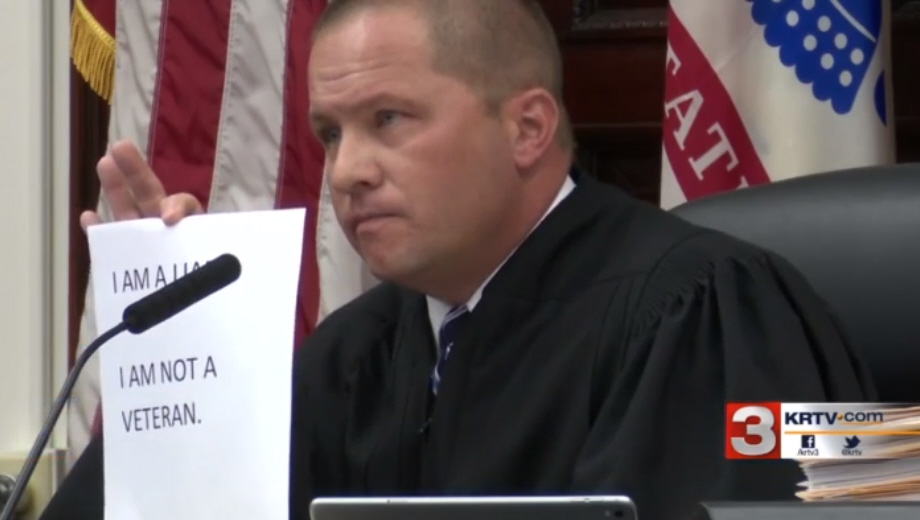 In order for both to be eligible for parole, Pinski had mandated that every year during the three-year suspended sentences both men received, the two had to stand at the Montana Veterans Memorial for eight hours on each Memorial and Veterans Day wearing a sign that reads, “I am a liar. I am not a veteran. I stole valor. I have dishonored all veterans.”