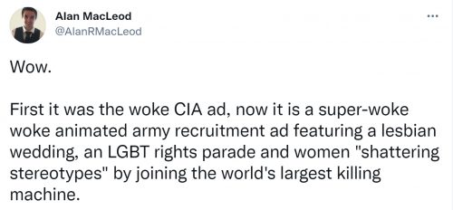 Isn’t this post the same topic Mason addressed this morning in his post “New Woke Army Recruiting Video, Even Includes Gay Wedding”?