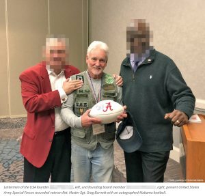 Based on his status as a wounded Special Forces veteran, Barnett was also honored by the Letterman of the USA with an autographed University of Alabama football.