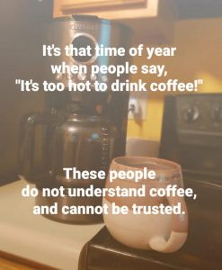 Iffn the coffee is ‘too hot’ you cool it down with whiskey, ffs.