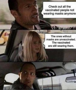 “The ones without masks are the unvaccinated. The vaccinated are still wearing them.