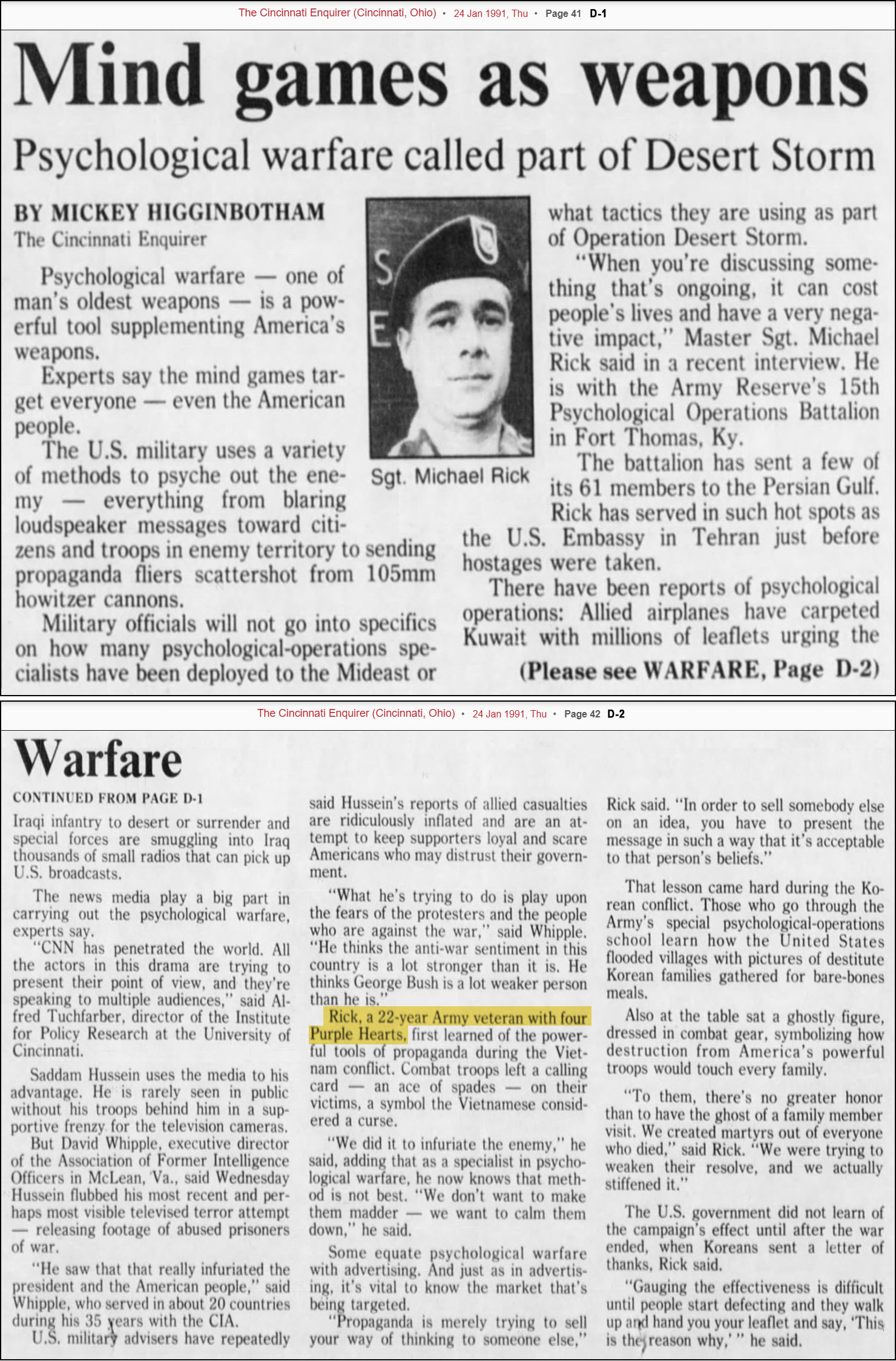 Mike Rick and his POW & 4 Purple Hearts self inflicted controversy.