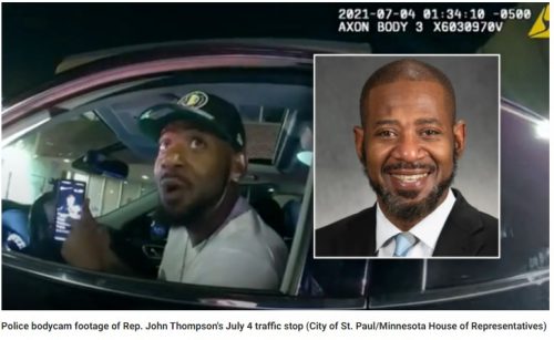 A police officer pulls State Representative John Thompson (D) over. The officer saw him without a front license plate. The way that John Thompson took off from the light also caught the officer’s attention. In the video, the police officer hands Thompson his ticket. In response, Thompson claimed that the officer profiled him, and pulled him over, “for being black”.