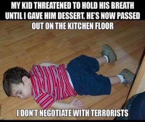and ‘I Don’t Negotiate with Terrorists’ is what my 8 yr old nephew just heard.