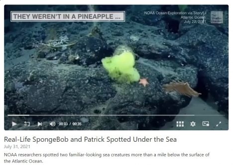 A yellowish sponge and pink starfish were captured together on video. This is a real life version of “SpongeBob and Patrick”. The video came from weather.com and NOAA. Enjoy your weekend.