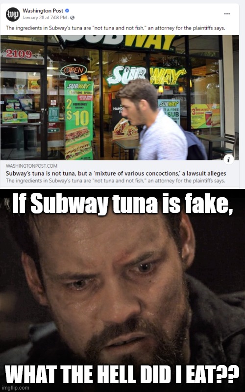 I love Subway, and I have to admit I am partial to tuna, so I *might* be a hypocrite if I continue to eat there. To be honest, Megan Rapinoe and her anti-American values turn me off more than fake tuna… if the tuna is fake.