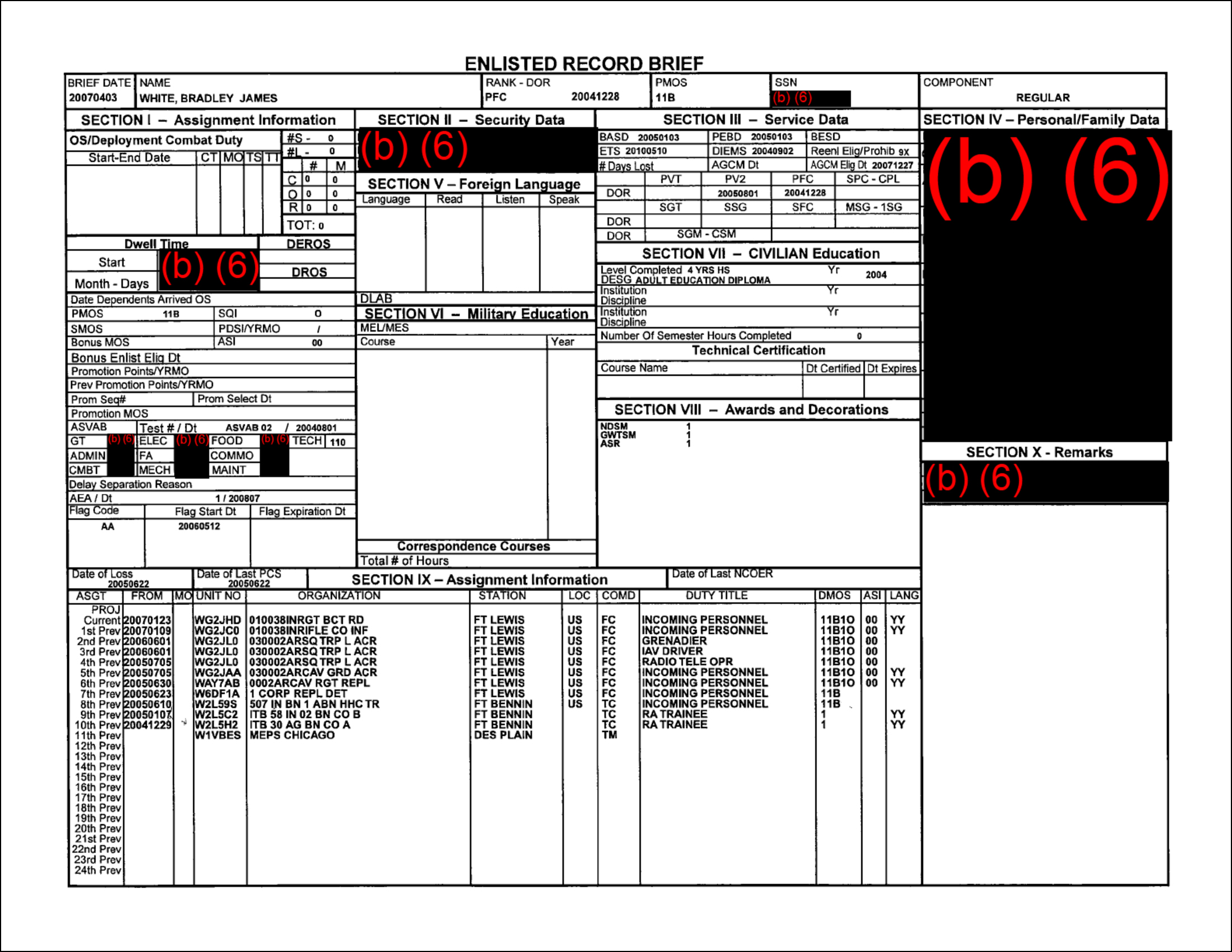 FOIA Result – HRC – Bradley White – DD-214FOIA Result – HRC – Bradley White – Assignments and Awards
