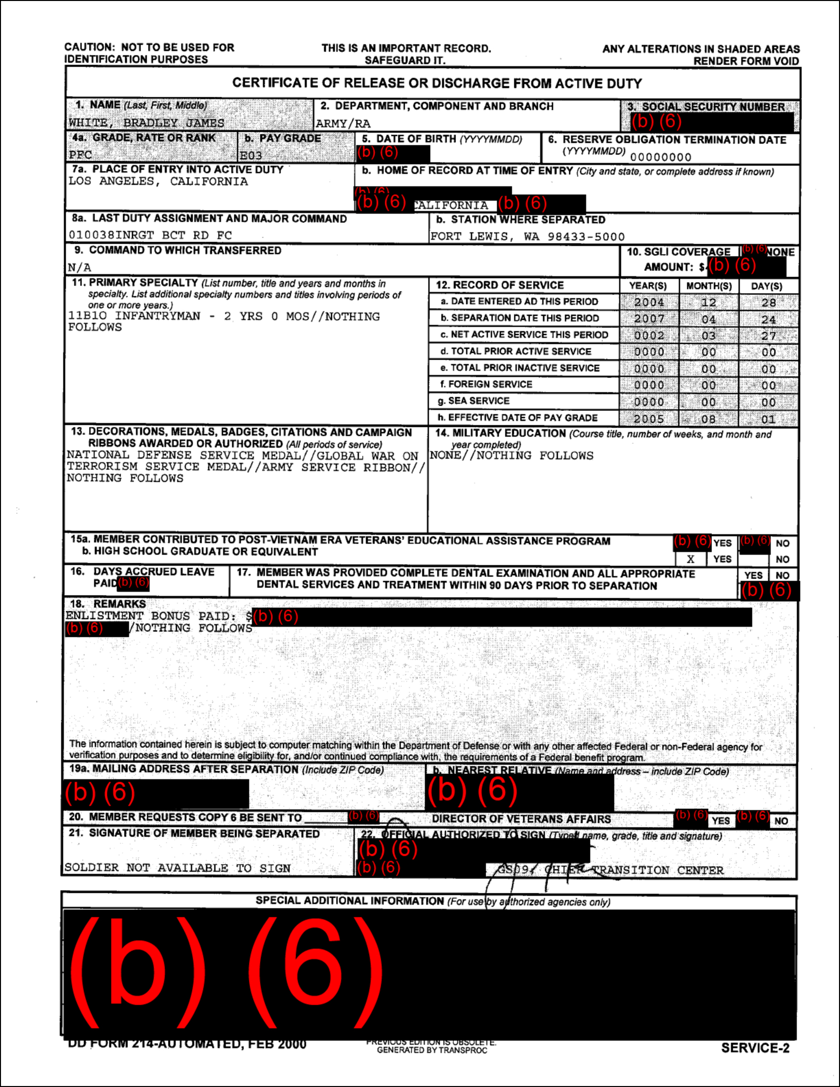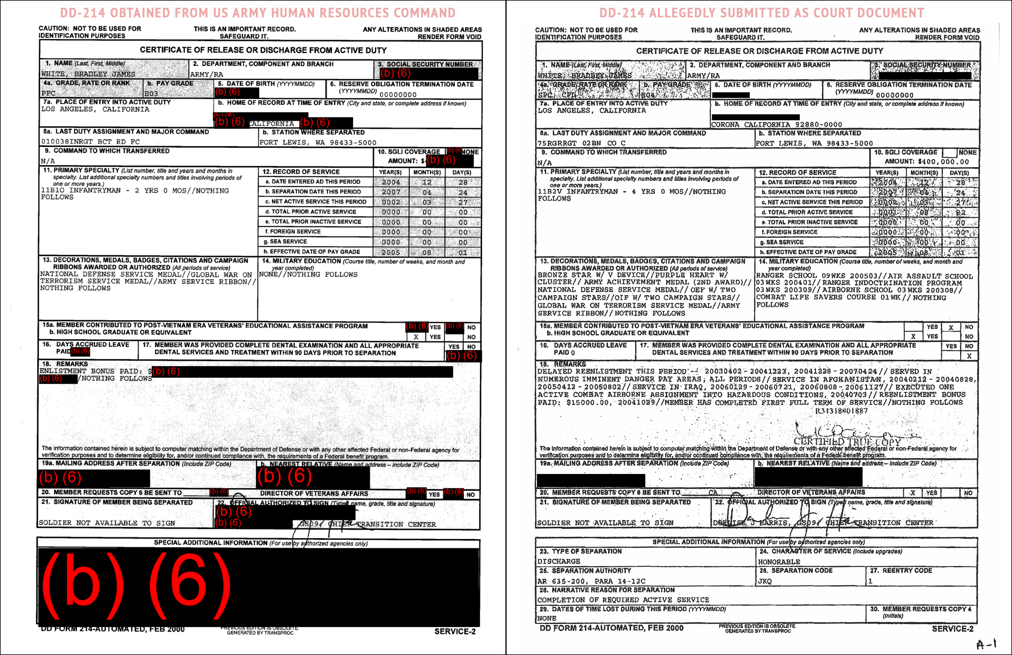 Comparison of DD-214s – Bradley James White