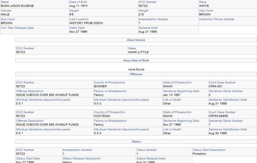 Since his first arrest was in 1994, when he was nineteen, it doesn’t look like Jason Bush had been in the military at all – despite the stories, the military frowns on recruiting folks with multiple felony convictions. But most people wouldn’t know that unless they served in the military.