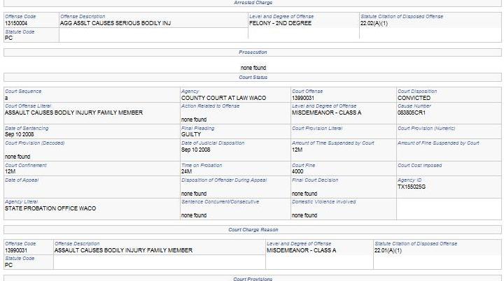 Or while he was on probation in Texas on a 12-month suspended sentence for a couple of counts of assault;
