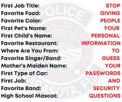 Have you seen this “click bait” post on Facebook or on other social media? These questions are similar to security questions. Resist the urge. Enjoy Your Weekend.