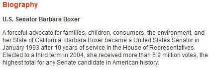 The General was testifying to Barbara Boxer, the junior senator from California. Here’s Barbara Boxer’s bio from her website;