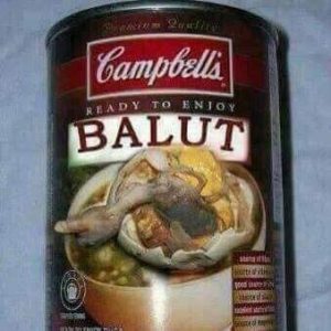 Hack Stone just showed his lovely bride Rosetta Stone the Campbell’s Soup Balut meme. She may be under the impression that is a genuine product available for purchase.