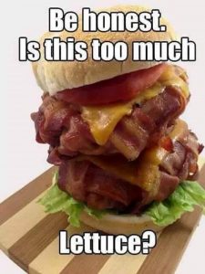 And yes, that appalling over-amount of lettuce needs to be promptly replaced with much more Bacon and Cheese but in this case, think it’ll be OK to eat the ‘mistake’… Cheers and thank you, AW1Ed!