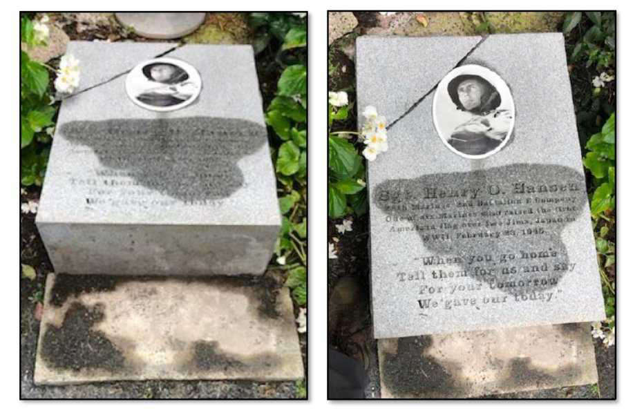KoB sends in word that a monument to Paramarine Sergeant Henry O. Hansen was vandalized. Hansen was part of the Marine patrol sent up Mount Suribachi during the Battle of Iwo Jima during World War II. He was one of the men who raised the first American flag over Suribachi.