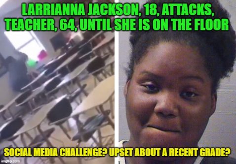 The student, Larrianna Jackson, grabbed the teacher by the hair and beat her to the ground in an unprovoked attack.