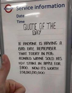 “Gosh, I keep getting e-mails from Nigerian princes and offers of Arizona beachfront property for some reason,” Ronald Wayne responded when reached for comment.