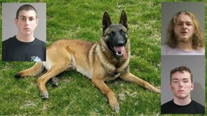 The Medford Police Department said that K-9 ‘Bones” led officers to the three suspects in a backyard.