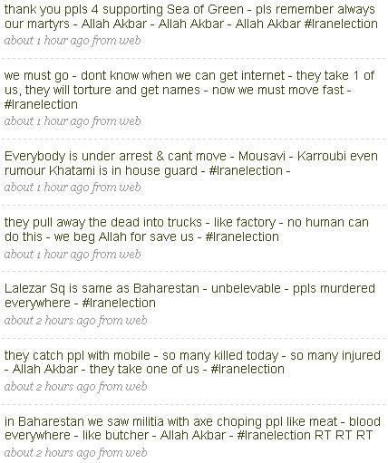 One Twitter user I’ve been following, Persiankiwi, stopped Twittering about an hour ago;