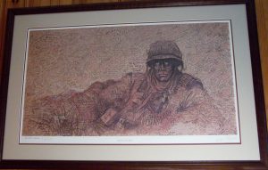 Much to my delight, at 4:50 in the video, the camera pauses on my donated print. The last time we visited before moving to Arkansas, they had yet to display it and I came close to asking them to return it so I could donate it to the Infantry Museum at Ft. Benning. I’m now very glad I didn’t.