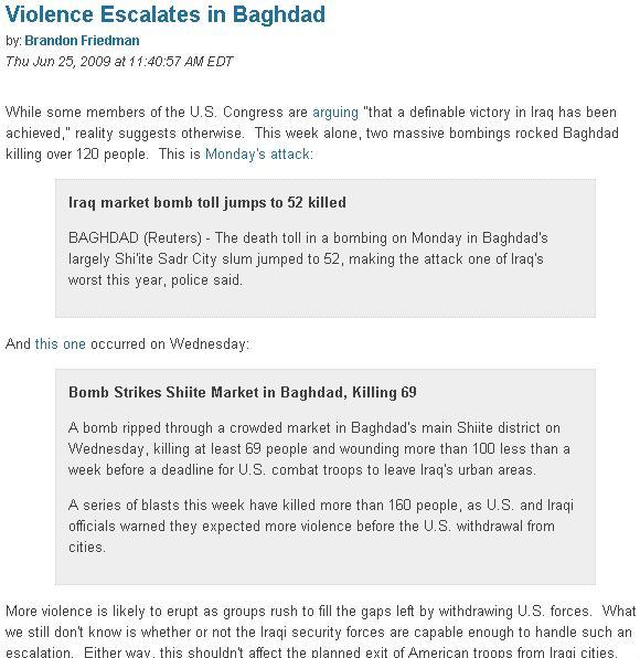 So what if everything we’ve paid for with with blood and treasure is in danger of being wasted? Well, if it is wasted, it’ll clearly be the fault of the anti-war crowd (that includes Mr. “The War I Always Wanted”). Iraq was in the win column until this crowd got their grubby mitts on it.