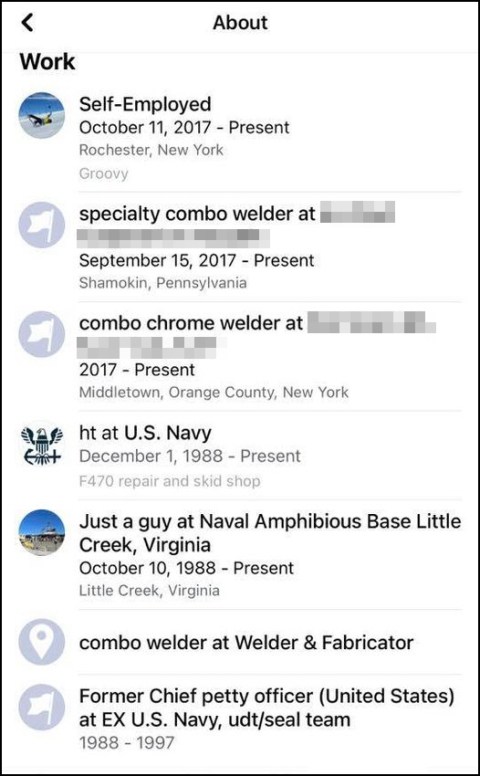 On a Facebook account that bears his name, there are several posts that show him wearing a SEAL Trident. One person commented that the Trident looked Photoshopped on his Navy uniform, the medals were not the proper size and he did not have Jump Wings (i.e. a Parachute Badge).