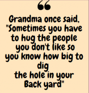 All good as usual. I especially liked grandma’s saying to hug people.