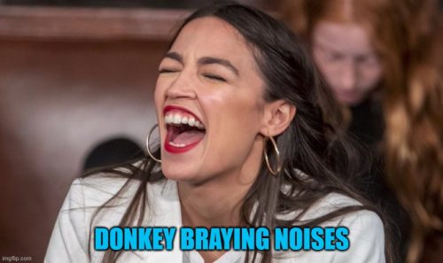 I can’t date her because I’m married, but I wouldn’t even if I could. Personally, I like like my women to be attractive and able to string together coherent thoughts and ideas. An IQ above room temperature is also a nice addition to the whole package (something else Ms. Occluded-Cortex is lacking). Every time she opens her mouth the prestige of a degree from BU declines, pretty soon it’s only going to about as valuable as tp before the CHICOM flu. AOC, be a good girl and go stick this fork in the electric outlet and tell me if the electricity is working right…that’s a good girl…