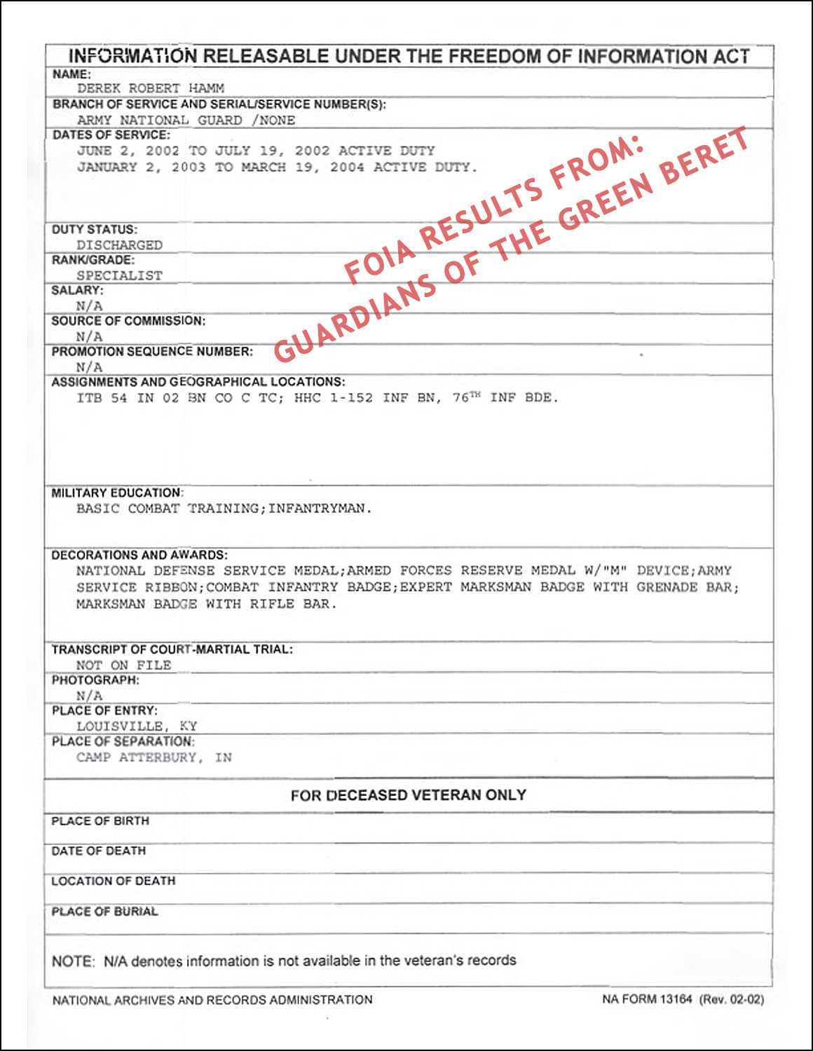 It turns out that the Guardians of the Green Beret have been looking into Hamm since 2017. They obtained his military records because the request was made pre-COVID-19.