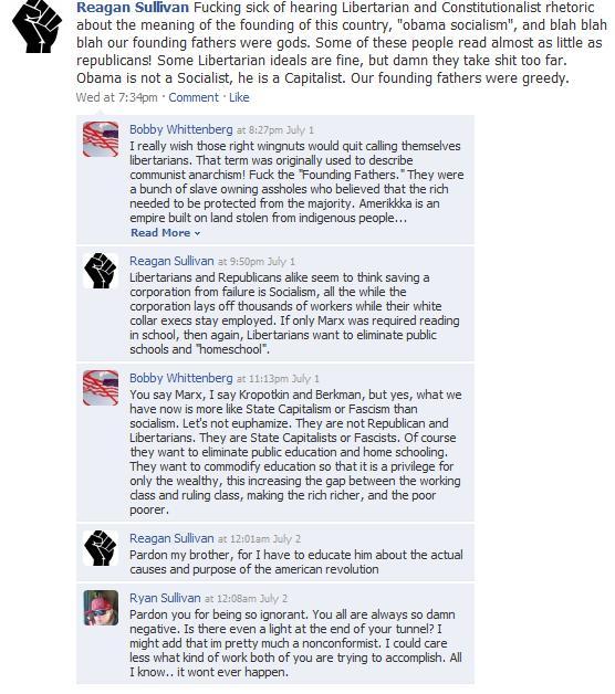 Since the holiday is almost over, I figure I can’t ruin it for y’all with this conversation between Reagan Sullivan and Bobby Whittenberg. We first ran into Reagan Sullivan when TSO wrote about him last year. We featured Bobby Whittenberg as a potential winner of our Worst Memorial Day post – nice to know he doesn’t like the 4th of July, either.