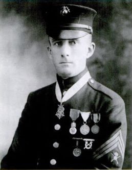 Grabbing the enemy’s grenades, he used them to then storm the rest of the emplacement. Using the enemy’s own gun pit, with German grenades he destroyed the enemy resistance single-handedly. He captured four Germans and another two undamaged machine guns.