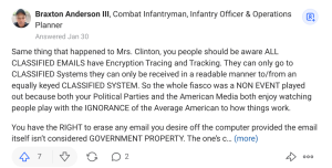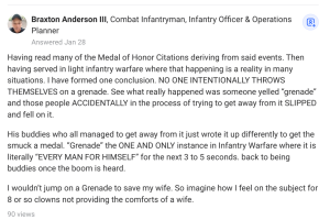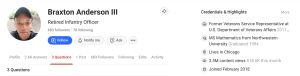 Since being outed (repeatedly) for his lies, Braxton Anderson III is active on Quora. There he answers questions with his years of service as an “infantry officer” and combat veteran.
