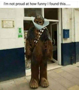 I just laughed so hard at Chewie in a “collar of shame” that my wife came into the room concerned that I may have hurt myself.