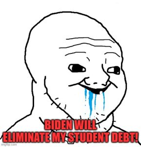 Yep, I’ve done the same, and I’m on the lowest damn rung of society, at poverty level. Made a payment last night and my total is now $7200, down from $28K. If a poor bastard like me can pay off his student loans, these millennials can nut up and pay off the loans that they SIGNED FOR! Fuck Joe Biden, he’s NOT THE PRESIDENT!
