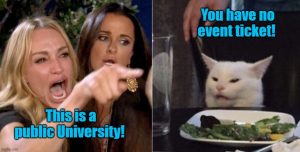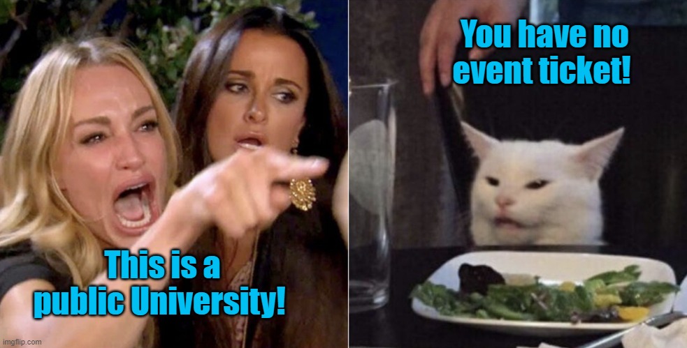 It’s always but always about race with these types. No event ticket, you have to leave. Me, you, her, and anyone else scamming a free seat. There is no ‘race’ in it whatsoever. But lots of entitlement thinking.