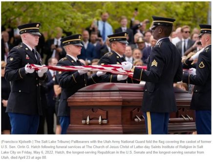 Just my humble opinion SeaBee, but I don’t think the writer cared either way about whether he was a demonrat or a republirat. Hatch was NOT a Military Veteran and was NOT entitled to a Military Funeral (using Federal Active Duty Trppps), pure and simple. See that section of the thread and my comment above on “…exceptions are made for politicians…”