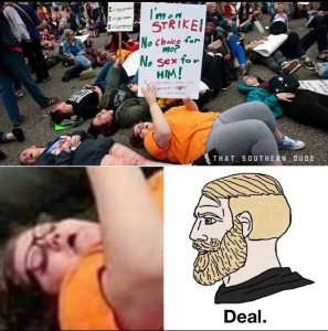 The women going on a “Sex Strike” are the women nobody would have sex with anyway which is why their “sacrifice” is just another empty virtual signal.