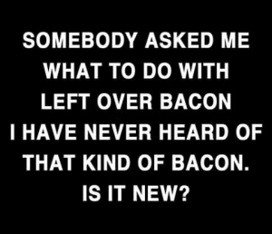 No such thing as leftover bacon! Fake news! Unless, of course someone asks, “Where’s the bacon we gonna cook?” Answer, “It was leftover by the cast iron skillet by the stove.”