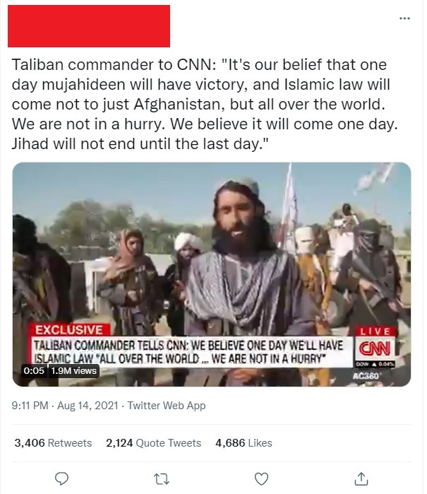 The report said that Al-Qaeda is “pleased with developments in Afghanistan” and that the terrorist group — which was responsible for 9/11 terrorist attacks on the U.S., which is the deadliest terrorist attack in world history — has used Biden’s chaotic and disastrous pullout from the country to “to attract new recruits and funding and inspire Al-Qaeda affiliates globally.”