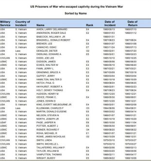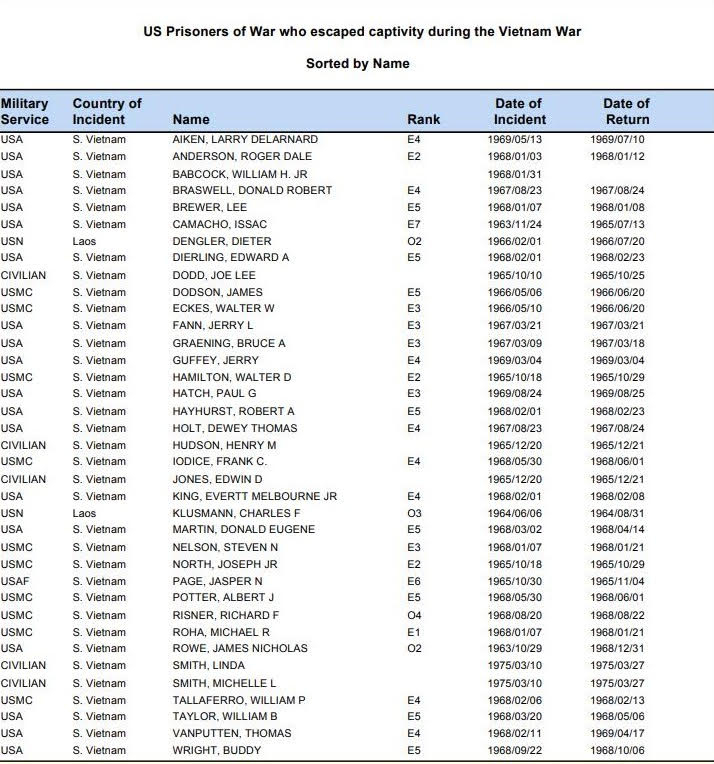 He was not on the Defense POW/MIA Accounting Agency (DPAA) list of POWs that escaped, nor was he on the list of POWs that were eventually released.
