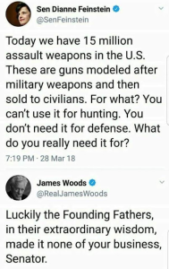Feinstein toon talks a lot of shit on assault rifles which by the way those US military rifles don’t meet the definition of an “assault rifle”