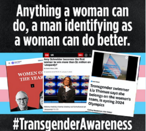 So, the fake chick with a dick is “Woman of the Year.” He was ranked about 500+th as a male college swimmer, and now his scam to beat female swimmers is being honored. Disgusting. Soon, the media Progs will be telling us that one of our fake military POSers is Veteran Hero of the Year. They already tried to sell us Mad Maggie and dozens of other Valor Thieves.