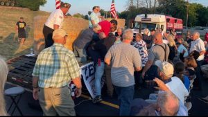 NY gubernatorial candidate Lee Zeldin, R. NY was attacked at a campaign rally by knife-wielding David G. Jakubonis, 43 of Fairport, NY. No injuries, the candidate says he grabbed the attacker’s wrist and bystanders, including AMVETS national director Joe Chenelly who is also running for NY office, immobilized Jakubonis until police arrived a few minutes later.