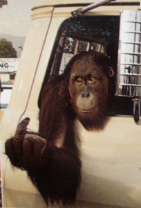 AW1, Clyde is flippin’ you the bird cause you had the temerity to imply he’s a monkey! Sheesh!