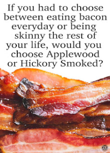 The bacon. I took an informal vote of my family, and I’m on my way to the store to get some of each. Okay, a lot of each for this week’s menu.