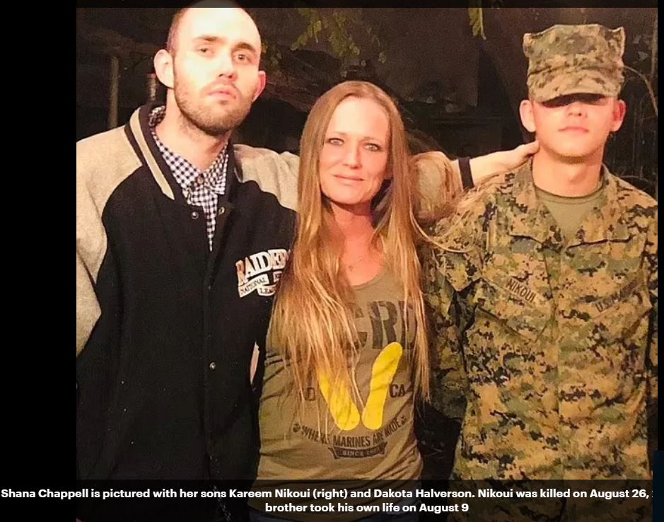 Dakota Halverson, 28, died on August 9. He was the older brother of Lance Cpl. Kareem Nikoui, 20, from Norco, California, who was one of the 13 military members killed by a suicide bomber outside the Kabul airport on August 26, 2021.