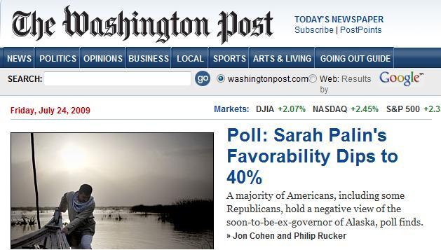 Overall, the new poll found that 53 percent of Americans view Palin negatively and 40 percent see her in positive terms, her lowest level in Post-ABC polling since she first appeared on the national stage last summer as Sen. John McCain’s running mate.