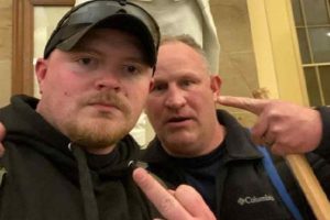 VA NG Cpl. Jacob Fracker got probation for his part in the January 6 fun and games after testifying against Thomas Robertson, an Army vet who was also a Rocky Mount, VA policeman. The above selfie was snapped in the Senate building after they allegedly donned gas masks and fought with DC police.