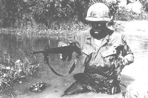 Specialist Four Tex Gray was the man in the trench. He said his shoulder wound prohibited him from getting out of the trench himself. “Just then I saw Sgt Hooper running across the field toward me with bullets hitting all around him,” He testified. “When he got to me he set his rifle down and I noticed it wasn’t even loaded. He got into the trench to help me out and the bullets were landing right next to us. Just then someone tossed him a .45 caliber pistol and he caught it. But he set it down so that he could lift me up. Just as he did, a VC sprang up out of nowhere and aimed his rifle right at Sgt Hooper’s head. But Sgt Hooper grabbed the pistol and shot the VC about five times. The .45 tore gaping holes in the VC and there wasn’t much left of him. Then Sgt Hooper carried me back to safety after saving my life twice.