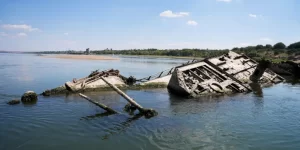 At the end of WWII with defeat imminent, Germany decided to scuttle much of their Black Sea fleet. Dozens of warships went down at the mount of the Danube river. Some sank in shallow enough water to be permanent navigation obstacles, and now 20 are exposed by the drought which has been gripping southern Europe.